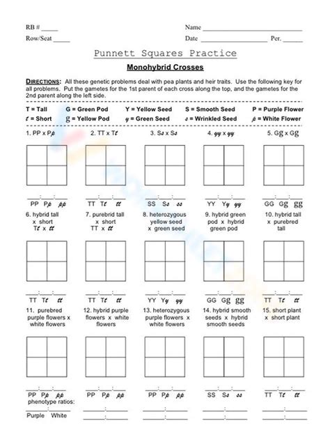 Monohybrid cross practice problems worksheets provide a valuable tool for students to practice and improve their understanding of monohybrid crosses. A monohybrid cross involves the study of a single trait, such as eye color, in a population. The goal of these worksheets is to help students understand the concepts and processes of monohybrid crosses and apply them in solving problems. This guide will provide an overview of monohybrid cross practice problems worksheets, including their purpose, benefits, and how to use them.