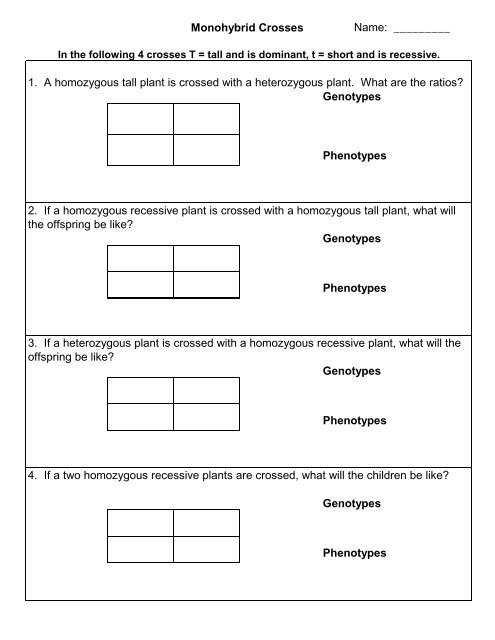 How to Use Monohybrid Cross Practice Problems Worksheets