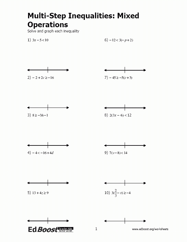 One of the main benefits of a multi step inequalities worksheet is that it offers students the opportunity to practice different types of problem-solving strategies. The worksheet can provide students with a variety of problem-solving scenarios that they can practice in order to gain a better understanding of the concept. This type of practice helps to reinforce the concepts taught in class and can help students to become more confident in their ability to solve multi step inequalities.
