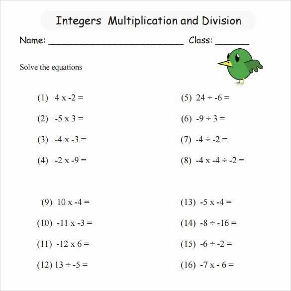 Another practical application of multiplication of integers worksheets is to introduce students to the concept of algebra. By providing students with worksheets that require them to solve equations that involve the multiplication of integers, students can gain an understanding of how to solve more complex equations. Additionally, teachers can use these worksheets to introduce students to concepts such as exponents and negative numbers.