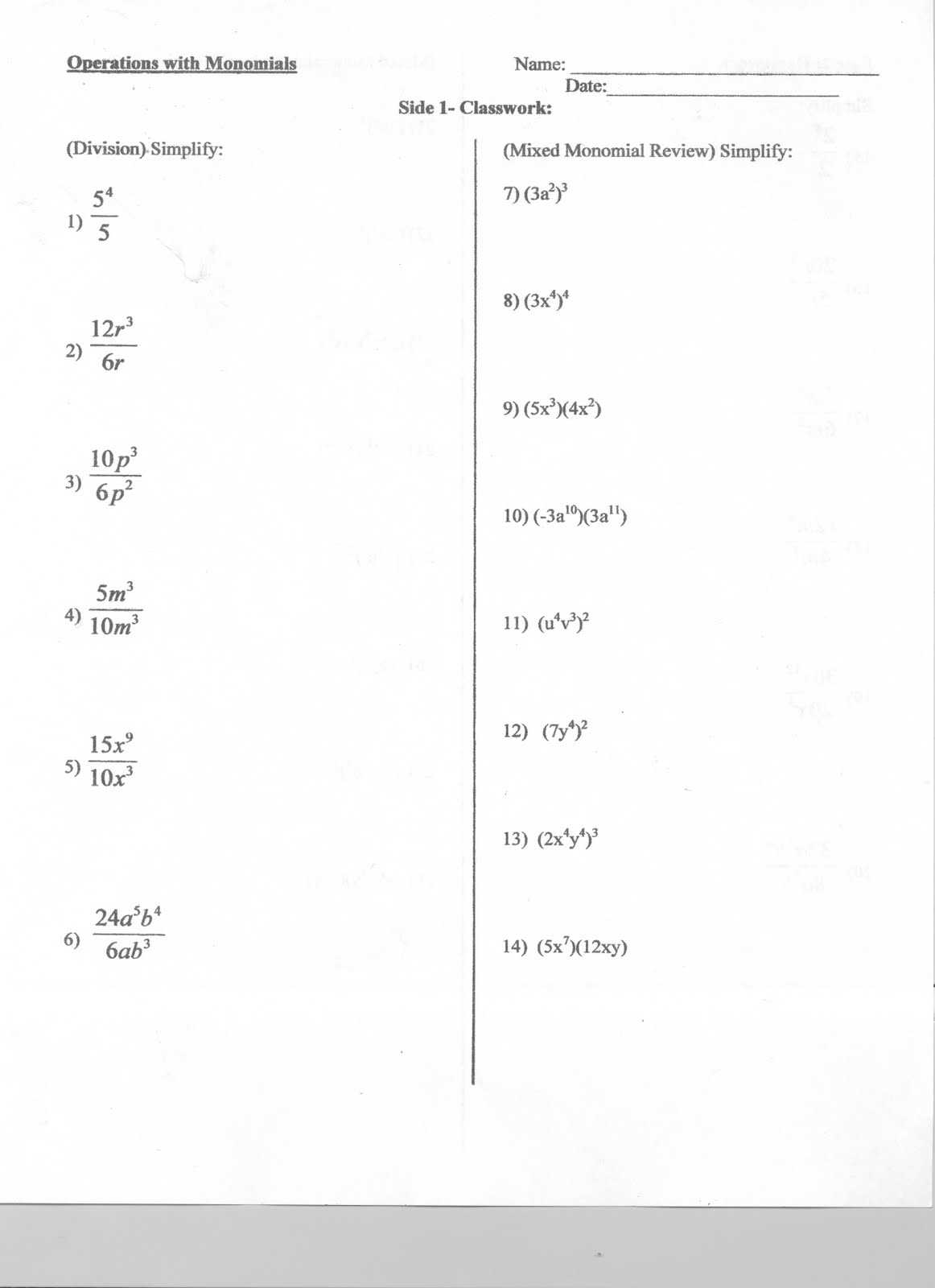 5 photos of the "Multiplying And Dividing Monomials Worksheet"