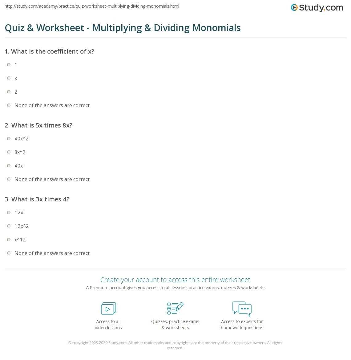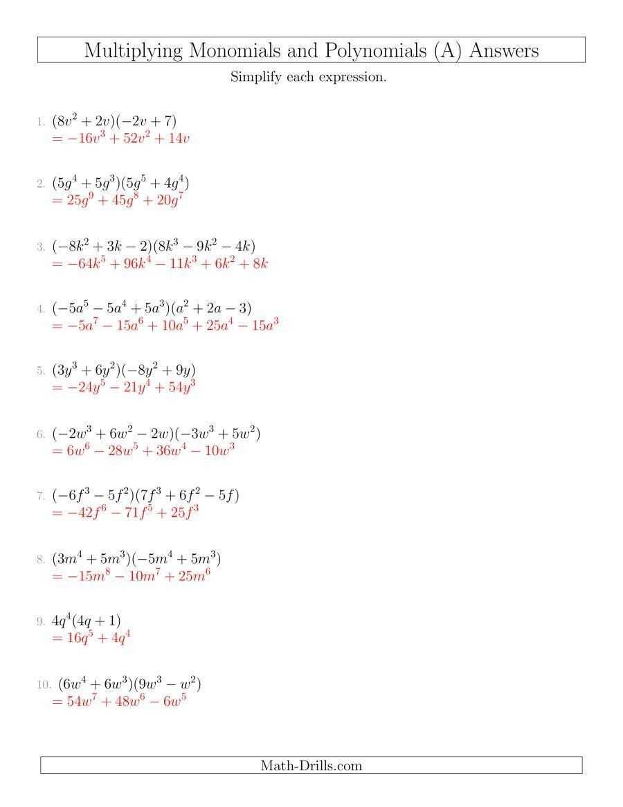 The use of multiplying monomials worksheet answers in math class also helps teachers to assess the progress of their students. By having the answers to the worksheets, teachers can assess how well their students are doing in their studies. This can help them to identify areas where the students may need additional instruction or help.