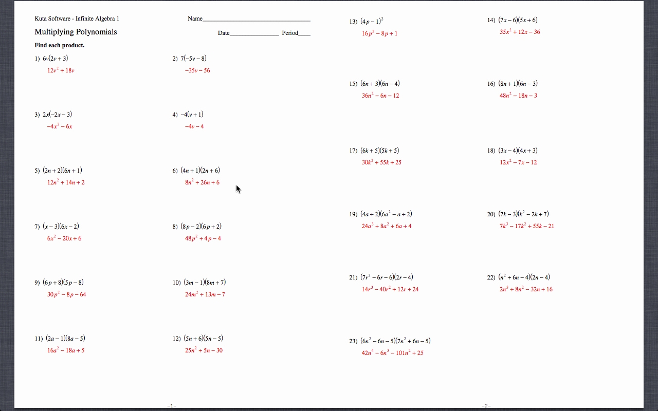 The Multiplying Monomials Worksheet Answers provide students with practice to help them understand how to correctly multiply monomials. The answers provide insight into the correct order of operations and how to combine like terms. By working through the problems on the worksheet, students can gain a better understanding of how to multiply monomials and be better prepared for more advanced mathematics.