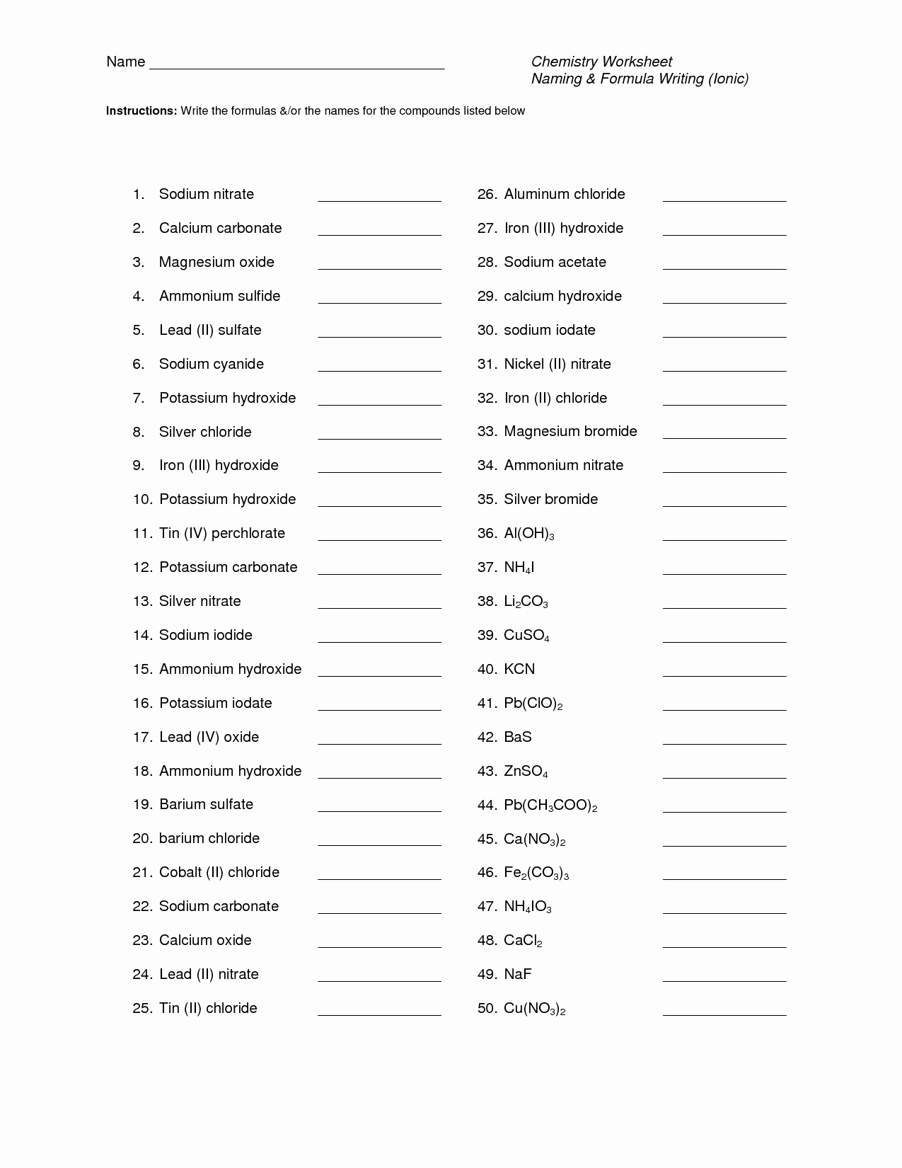 Finally, the worksheet can provide students with practice on how to correctly write the names of the compounds they are studying. This practice can be very beneficial, especially for those students who are not familiar with the language of chemistry. By practicing on the worksheet, students can gain a better understanding of the language of chemistry and how to correctly name compounds.