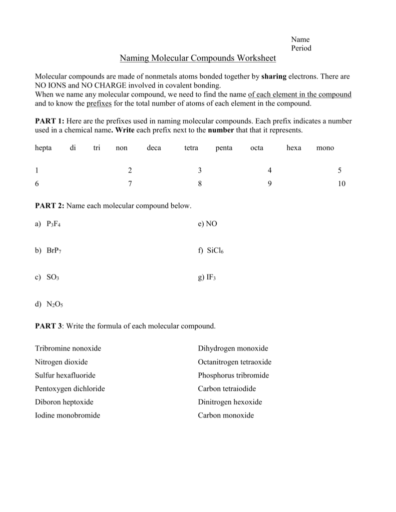 Naming Molecular Compounds Worksheet With Naming Molecular Compounds Worksheet