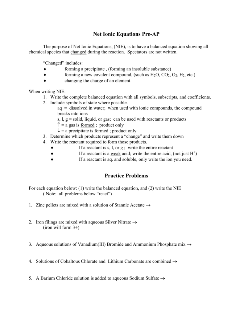 Net Ionic Equations Worksheet For Net Ionic Equations Worksheet