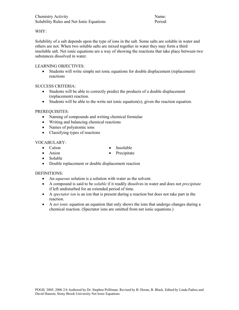 Solubility And Net Ionic Equations Worksheet - Equations Worksheets Inside Net Ionic Equations Worksheet