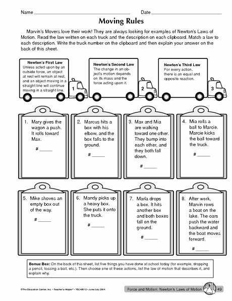 1. Introduce Newton’s Laws of Motion: Before beginning the worksheet, explain the three laws of motion and their implications. This will help students understand and remember the content throughout the worksheet.