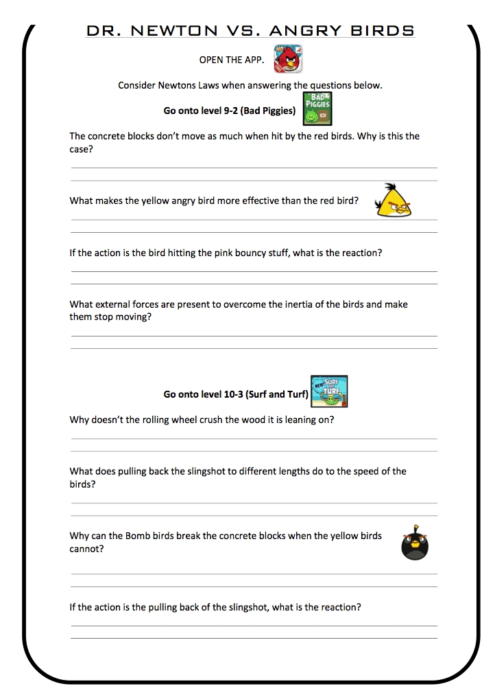 Newtons Laws Vs. Angry Birds - Pe Scholar Pertaining To Newton's Laws Of Motion Worksheet