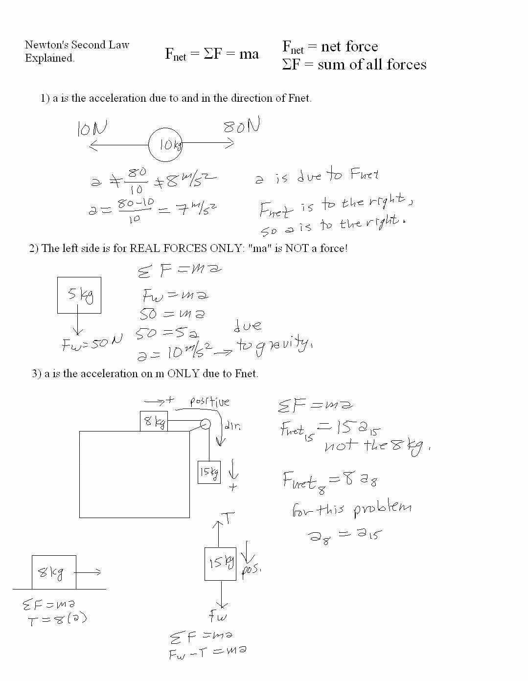 Newton'S Second Law Example Of Student Practice Worksheet Throughout Newton'S Second Law Worksheet