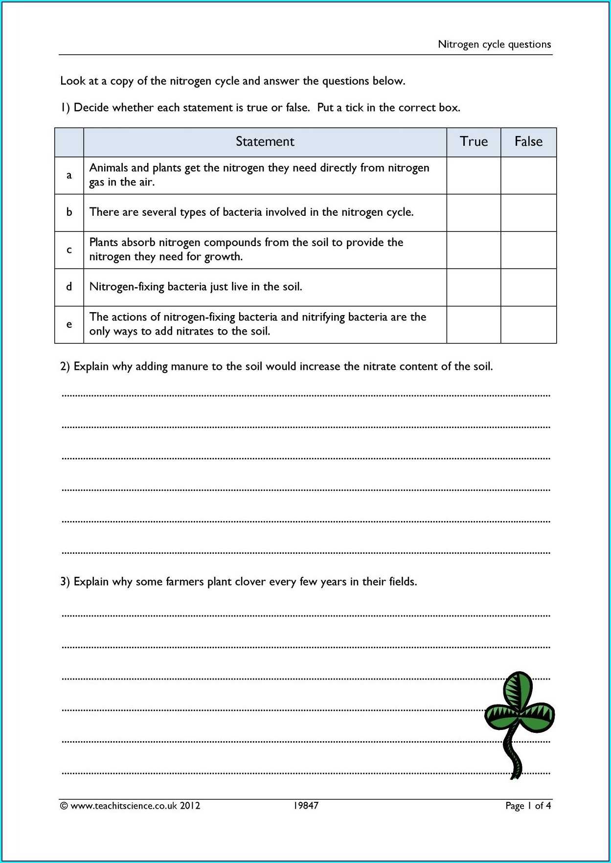 The worksheet also includes various questions and activities to help students gain an even deeper understanding of the nitrogen cycle. For example, it challenges students to consider how nitrogen is used in plants and animals, and how it affects the environment. It also encourages students to think critically about how human activities can affect the nitrogen cycle.
