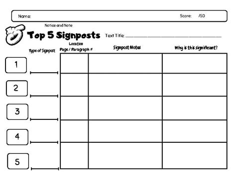 3. Develop the Content: Write the content for each section of the worksheet. The introduction should explain the purpose of the worksheet and provide a brief overview of the six signposts. The instructions should explain what students should do when they come across each of the six signposts in a text. The student response section should include a separate space for each of the six signposts.