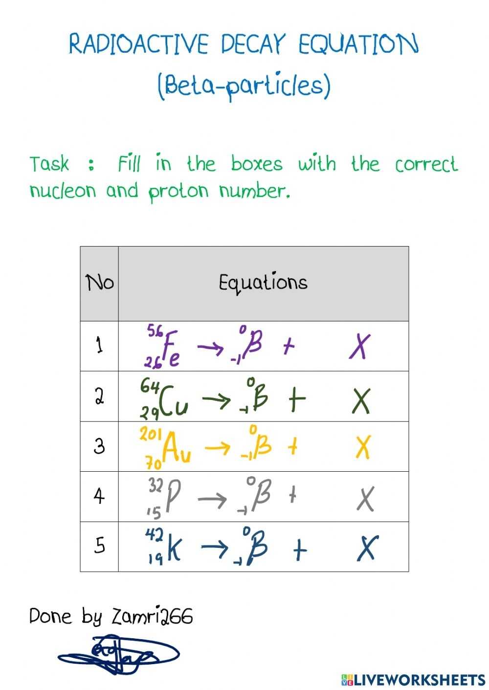 Nuclear decay is an essential concept in nuclear physics, and understanding it is essential for students who want to pursue careers in nuclear engineering, medicine, and other related fields. Worksheets can be an effective tool to help students learn the basics of nuclear decay. Answer keys can be especially helpful, as they provide students with the correct answers to questions, allowing them to check their own work and identify their errors.