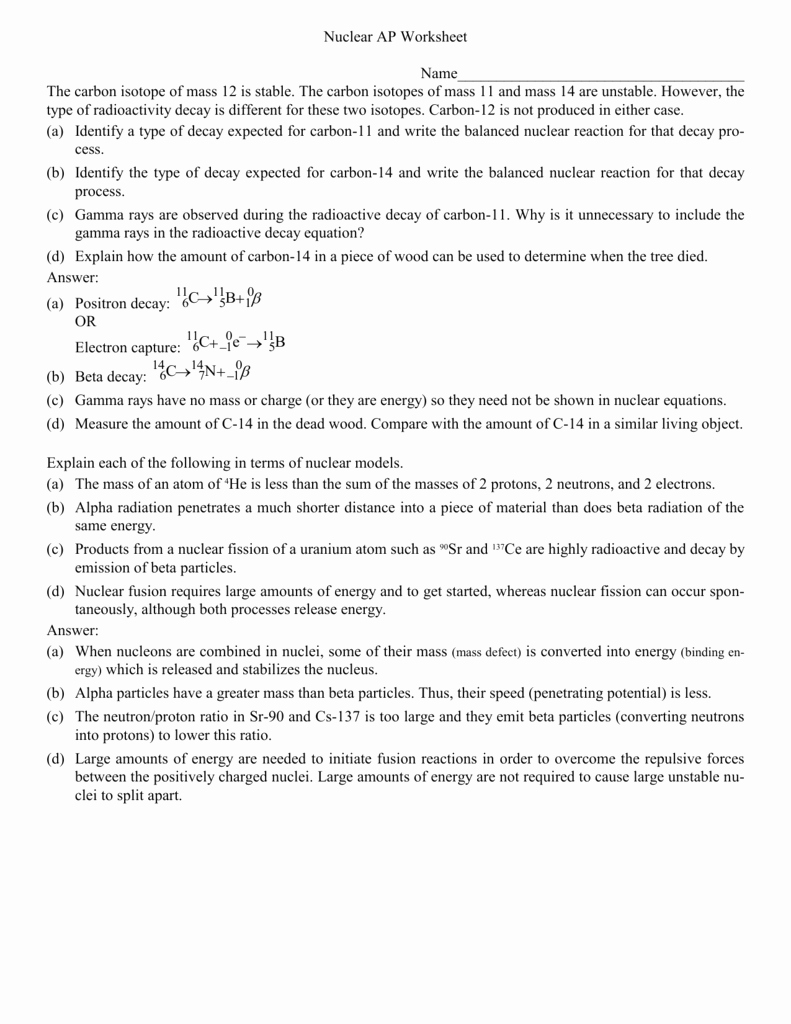 Interpreting the results from a nuclear decay worksheet can be a daunting task, particularly if the data is complex. In order to successfully draw conclusions from the data, it is important to understand the basic principles of nuclear decay and the mathematical relationships involved.