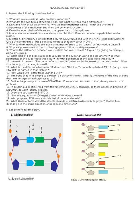 The nucleic acids worksheet is an invaluable resource for anyone interested in learning more about these important molecules. It provides a comprehensive overview of their structure, function, and role in the cell cycle, as well as their importance in the transmission of genetic information.