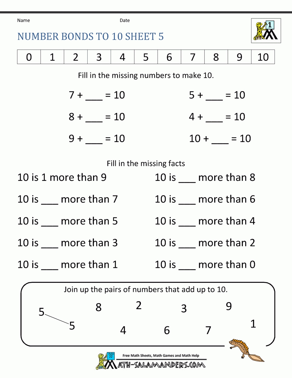 Number Bonds To 10 Worksheets Throughout Number Bonds To 10 Worksheet