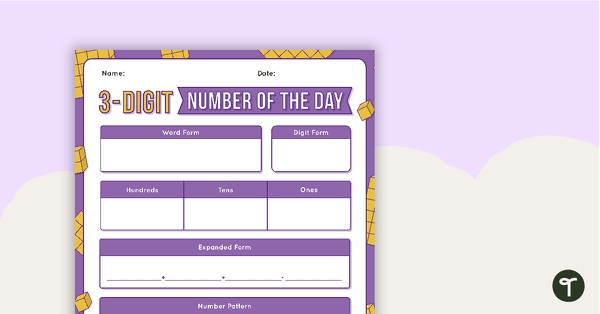 3 Digit Number Of The Day Worksheet | Teach Starter In Number Of The Day Worksheet