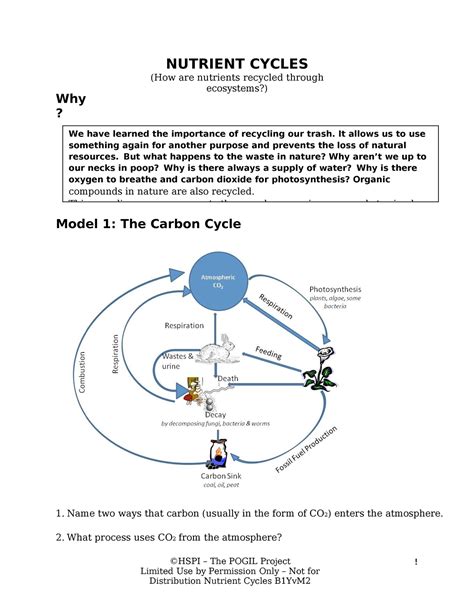 Exploring Nutrient Cycles Through Worksheet Exercises