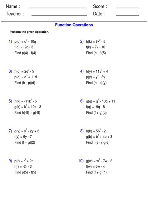 Fourth, an operations with functions worksheet can help students to develop problem-solving skills. The worksheet provides students with a structure that they can use to analyze the problem and come up with solutions. This can help them to become better problem-solvers, which is a valuable skill that can be used in any field.