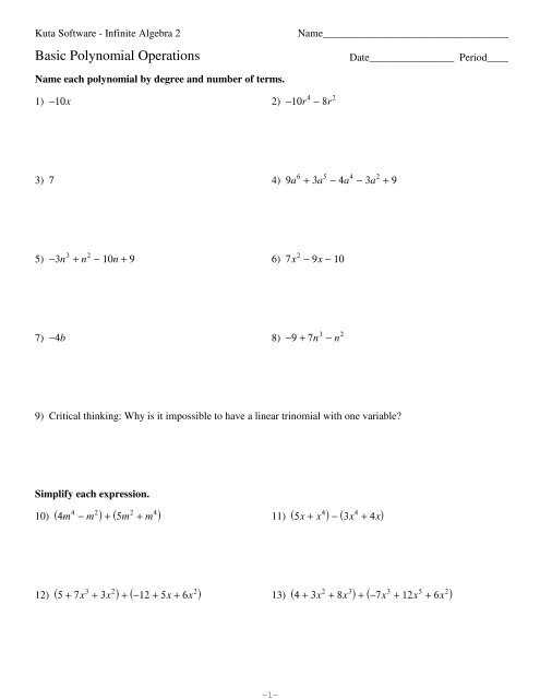 Unpacking the Basics of Operations With Polynomials Worksheet