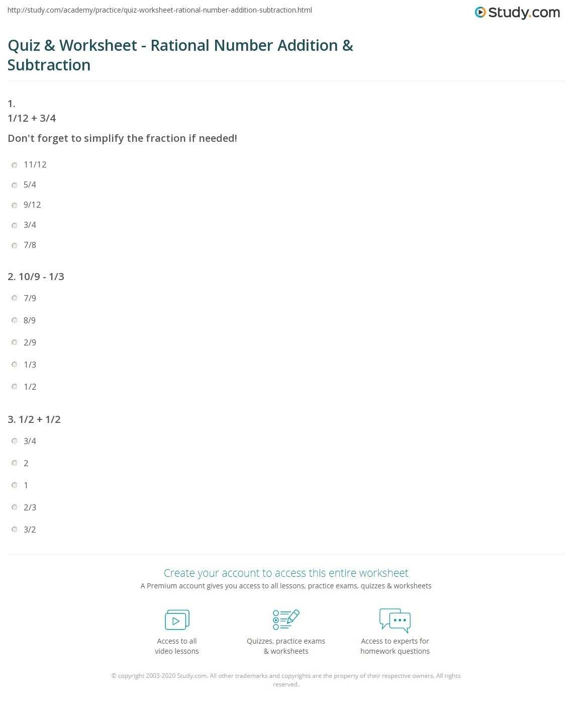 Subtraction worksheets involve subtracting rational numbers. These worksheets can help students practice subtracting rational numbers in a variety of forms, including fractions, decimals, and mixed numbers. Students can learn how to subtract fractions with different denominators, or how to simplify the subtraction of fractions with the same denominator.