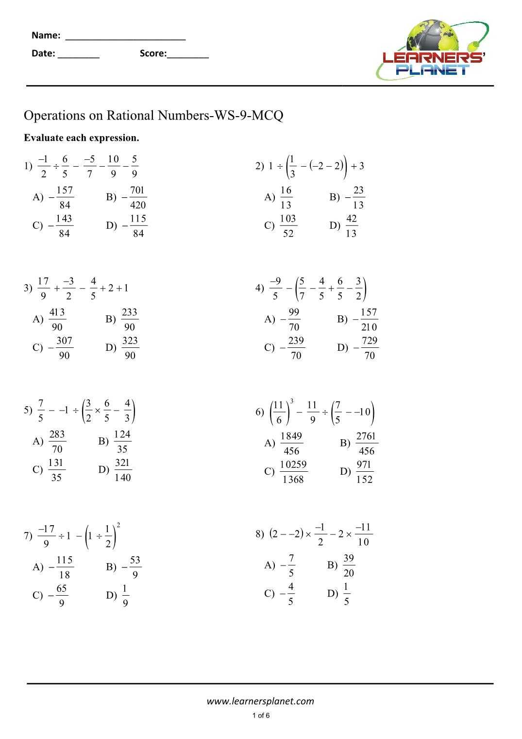 Overall, worksheets that focus on operations with rational numbers can be a great resource for students to practice and improve their skills with these operations. These worksheets can help students gain a better understanding of how to apply these operations in real-world situations.