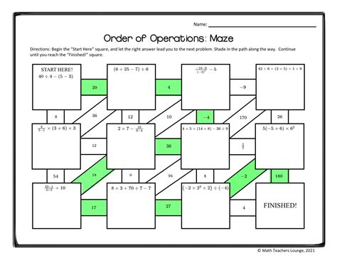 Order of operations puzzle worksheets also serve as an effective assessment tool. By using these worksheets, teachers can assess student progress and identify areas of improvement. This allows teachers to adjust their instruction to focus on areas where students need additional help.