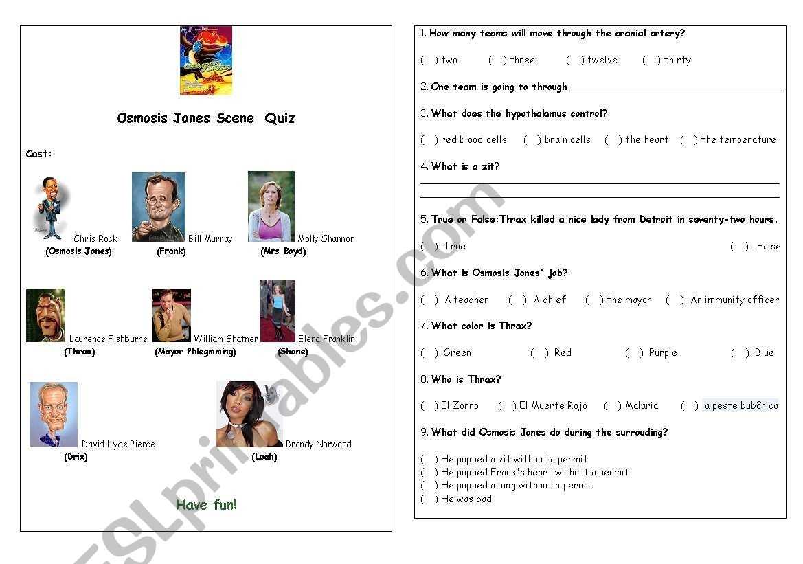The Osmosis Jones Movie Worksheet provides an excellent introduction to the fascinating world of the human body. It helps students to understand the importance of the immune system, the role of osmosis, and how viruses can impact the body. Through this worksheet, students can gain a deeper understanding of the body’s systems and how they work together to keep us healthy. This worksheet is a great way to introduce students to the world of biology and help them understand the importance of the immune system.