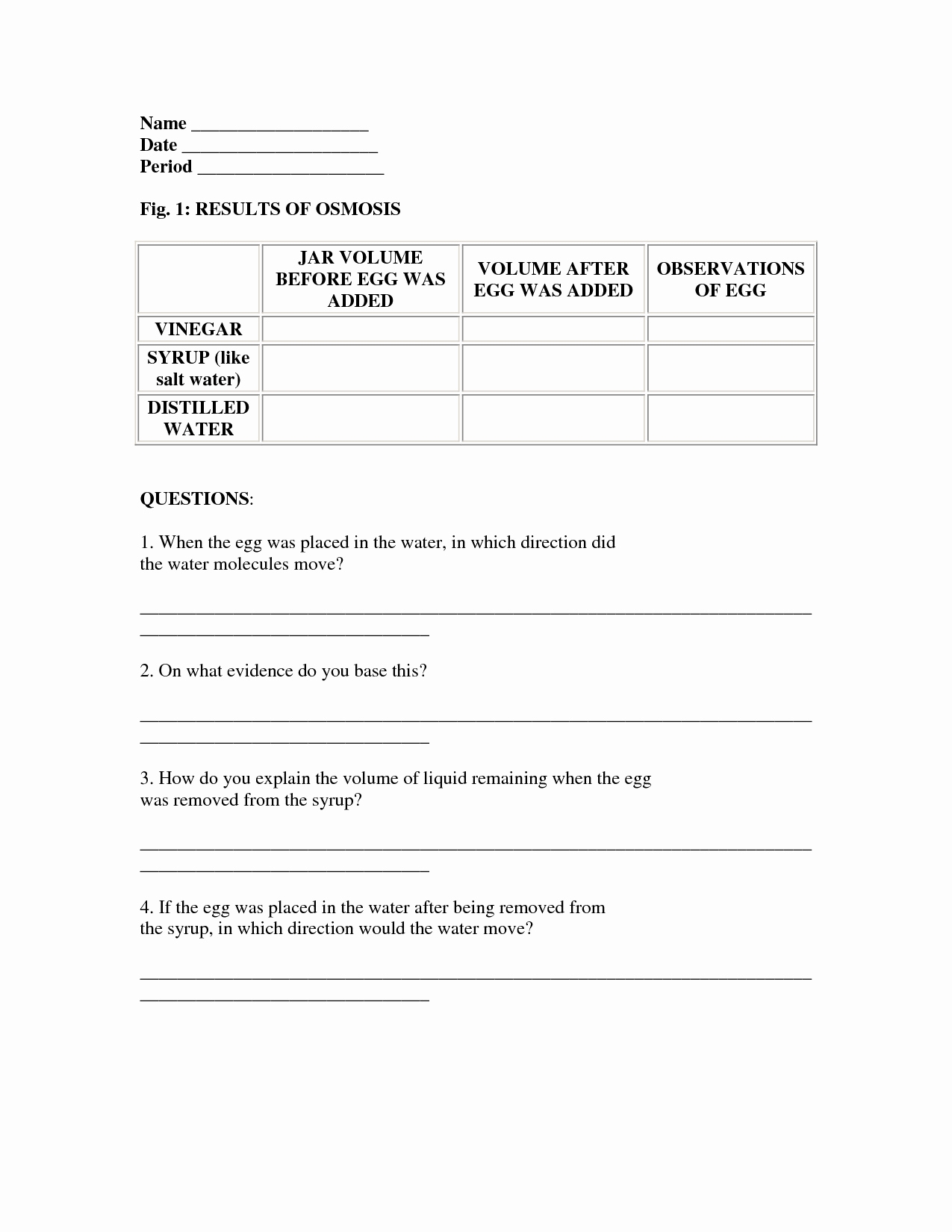 Next, the worksheet explains the importance of osmosis in the human body. It explains the role of osmosis in the transport of nutrients and water into cells, as well as in the removal of waste products. It also explains how osmosis helps regulate the balance of electrolytes in the body, as well as how it helps with the movement of substances through cell membranes.