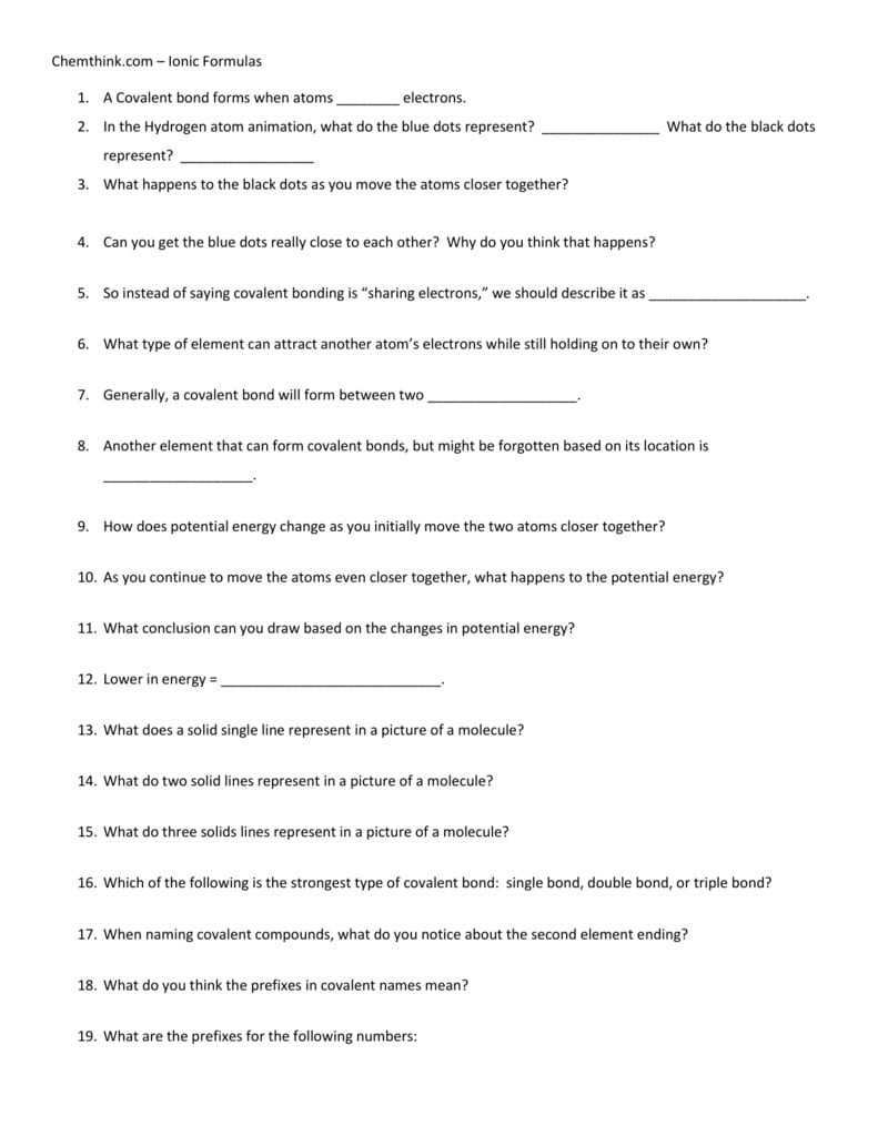 Chemthink Covalent Bonding Worksheet Answers — Db Excel With Regard To Overview Chemical Bonds Worksheet Answers