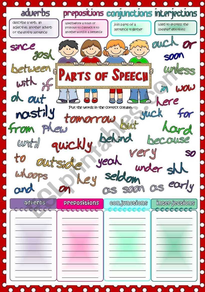 Parts Of Speech 2 - Adverbs, Prepositions, Conjunctions, Interjections With Part Of Speech Worksheet Pdf