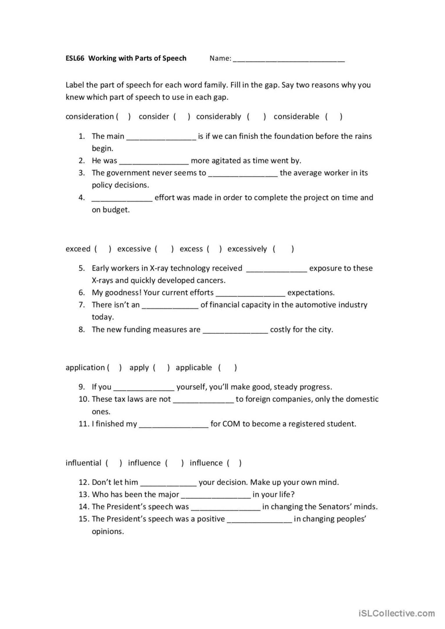 Working With Parts Of Speech Academi…: English Esl Worksheets Pdf & Doc With Regard To Part Of Speech Worksheet Pdf