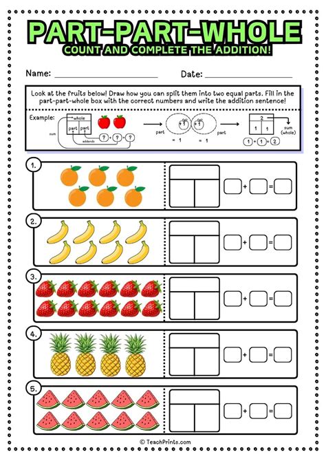 Part-Part-Whole worksheets can be an effective way to help students understand the relationship between parts and wholes. By providing a visual representation of the concept and using questions to reinforce understanding, teachers can ensure that students are well-equipped with the skills needed to solve more complex math problems.