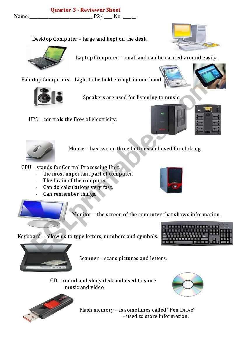 Parts Of A Computer Worksheet For Parts Of A Computer Worksheet