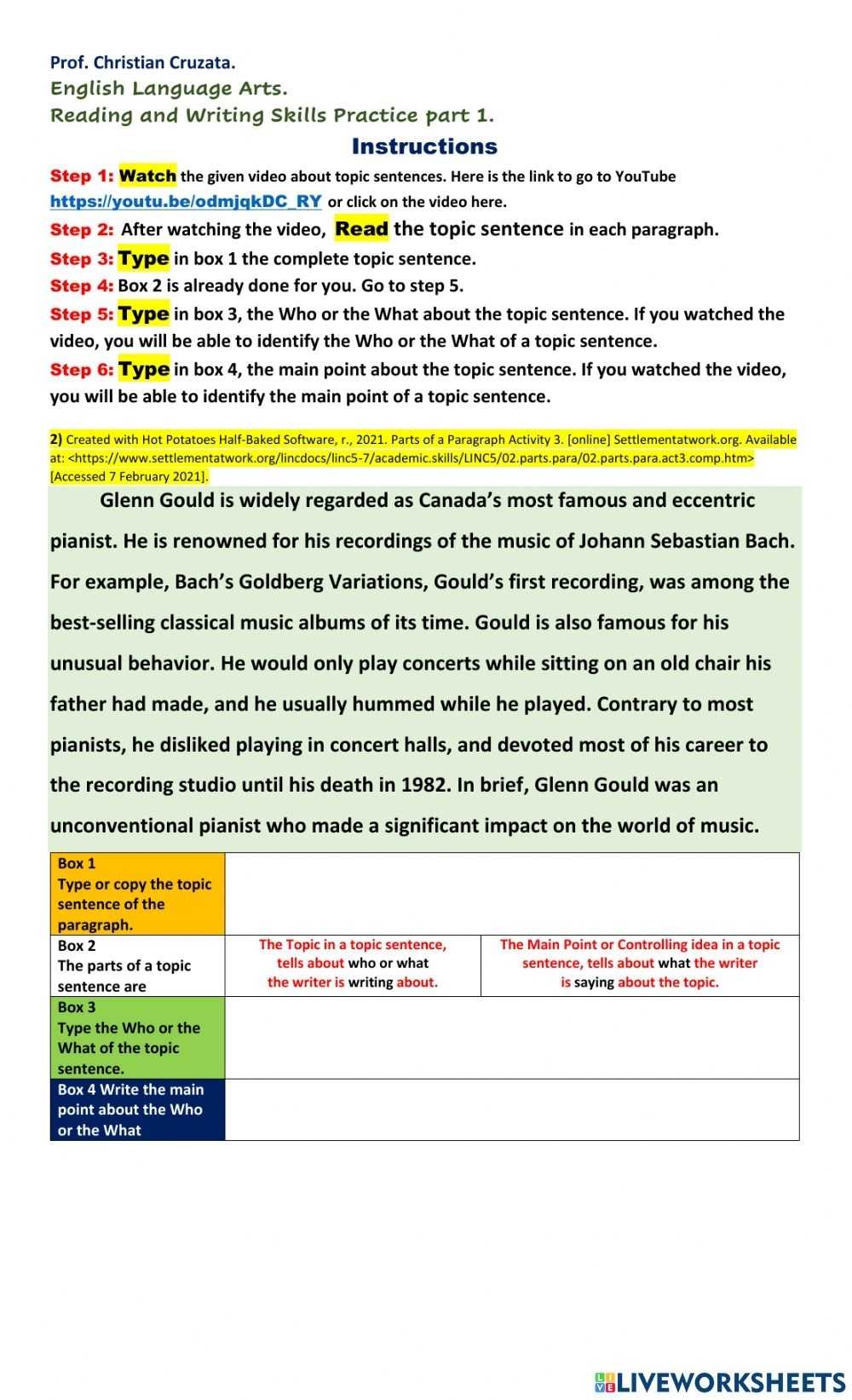 2. Provide examples of sentences. Give students examples of sentences with the different parts labeled. Allow them to practice identifying the parts of the sentence themselves.