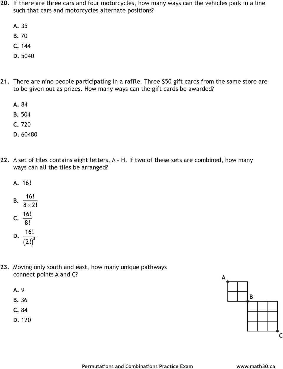 The worksheet should also include a section for practice problems. This section should feature a variety of different types of problems that the students can use to gain a better understanding of the concepts. This could include practice problems that involve both permutations and combinations, as well as those that focus on only one concept.
