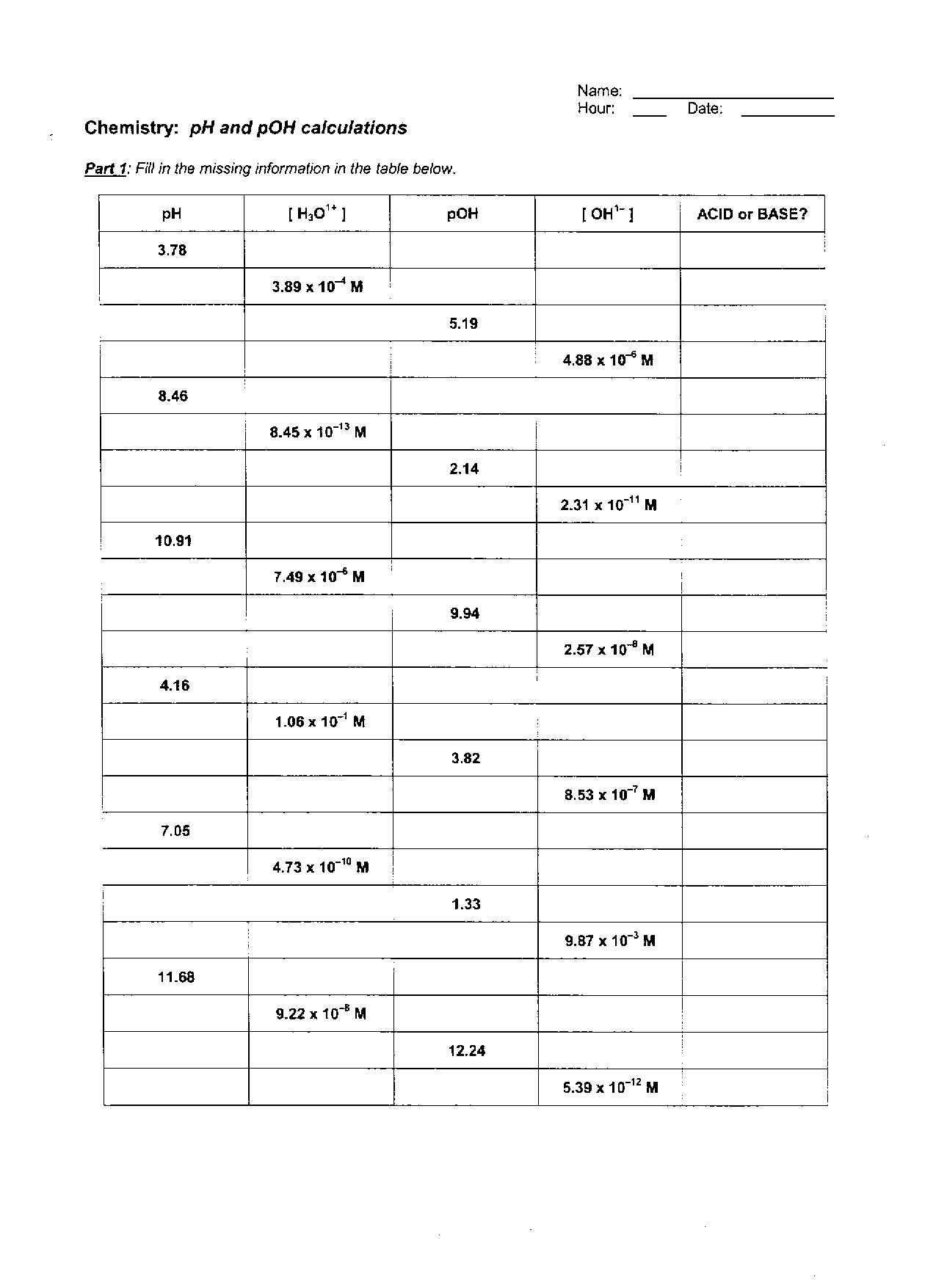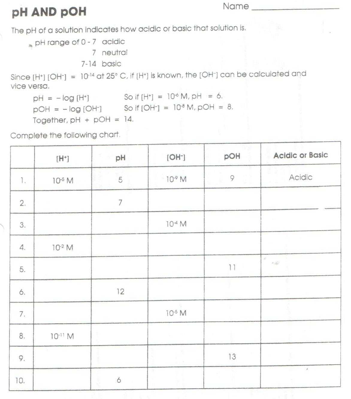 Ph And Poh Worksheet - Free Worksheet Within Ph And Poh Worksheet Answers