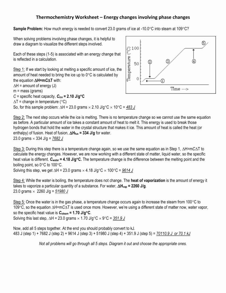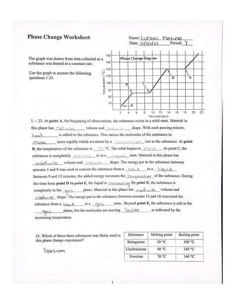 The worksheet answers are an important resource for understanding the physics of phase change. By filling out the worksheet, students can better visualize the energy transfer and gain a better understanding of the process. The worksheet typically asks for information such as the temperature of the substance before and after the phase change, the type of substance, and the amount of energy added or released.