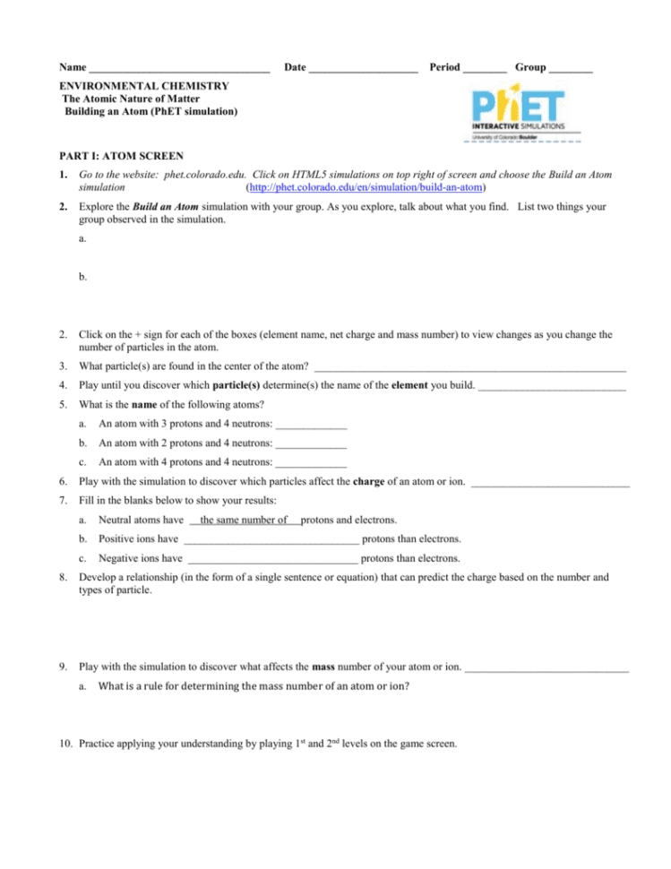 Phet Build an Atom Worksheet can be a great tool for helping students to understand atomic structure. This worksheet is designed to provide students with an interactive and engaging way to explore the composition and structure of atoms.