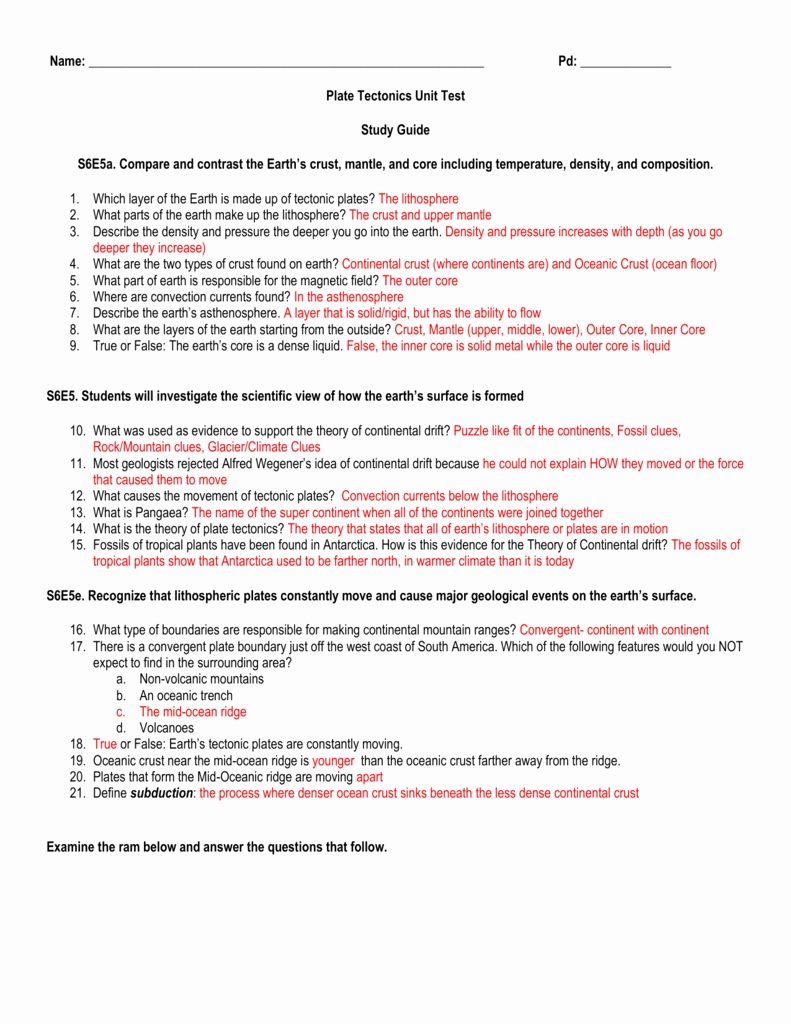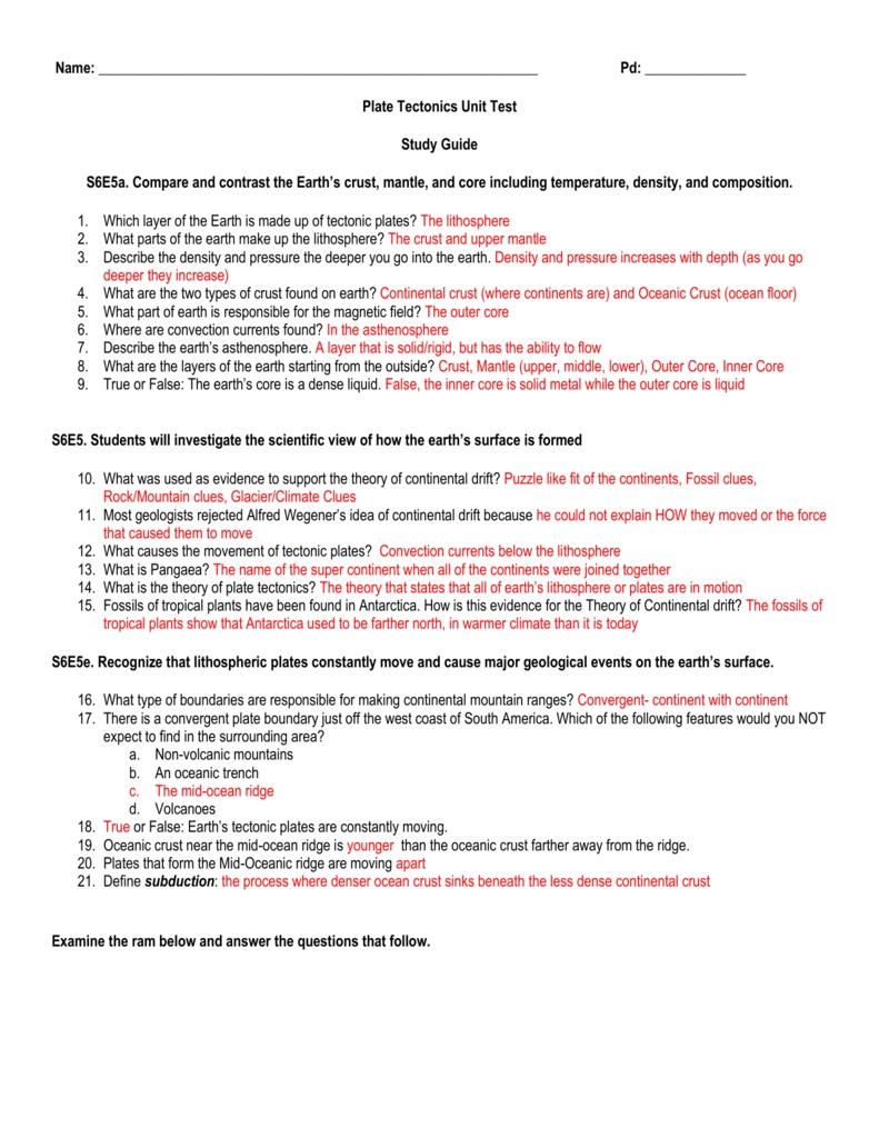 Name: Pd: Plate Tectonics Unit Test Study Guide S6E5A. Compare In Plate Tectonics Worksheet Answer Key