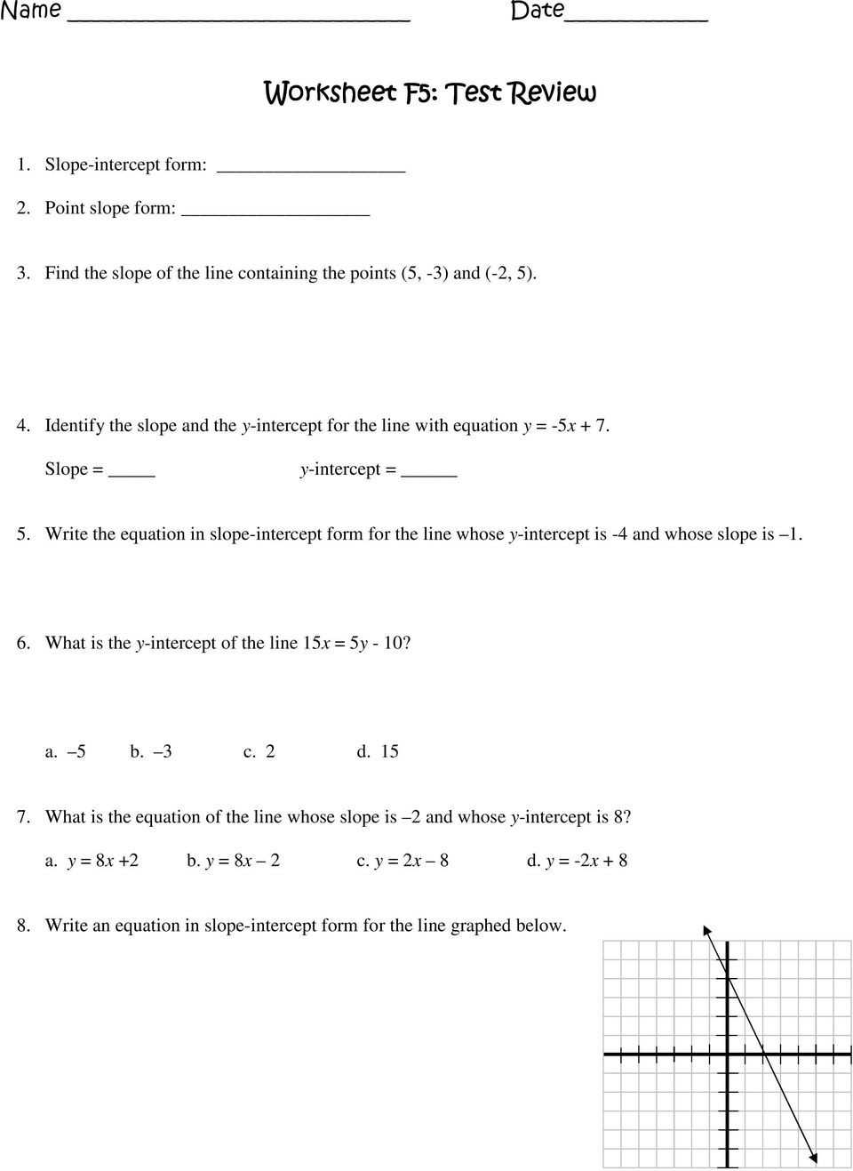 Algebra 1 Slope Worksheet With Regard To Point Slope Form Practice Worksheet