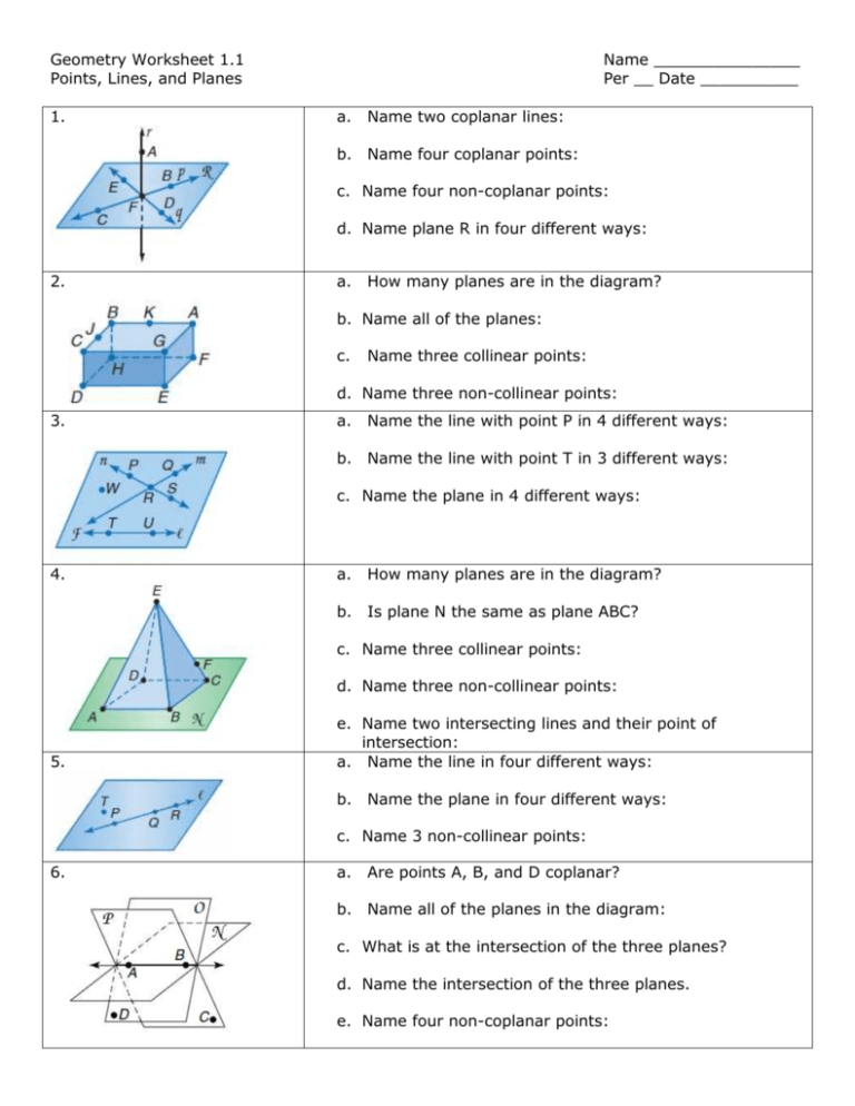 Points lines and planes worksheets can also be used to encourage student engagement with the material. By providing students with activities that require them to think critically and apply their knowledge of geometry, these worksheets can help to keep students engaged in the learning process. This can lead to an increase in student understanding of the concepts related to geometry.