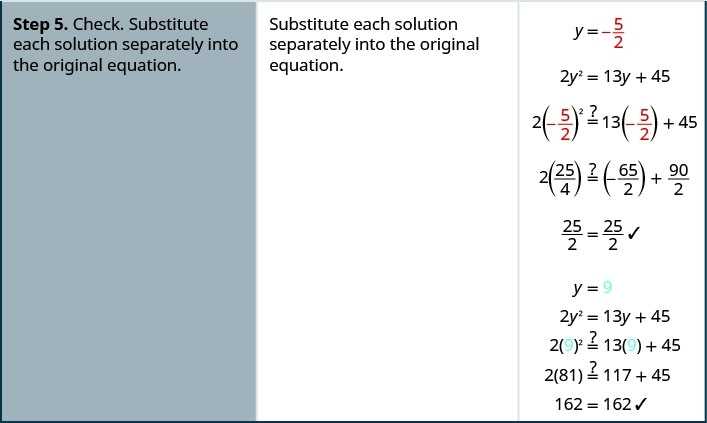 The fifth step is to check the answer. This can be done by substituting the values into the equation to see if it is true.