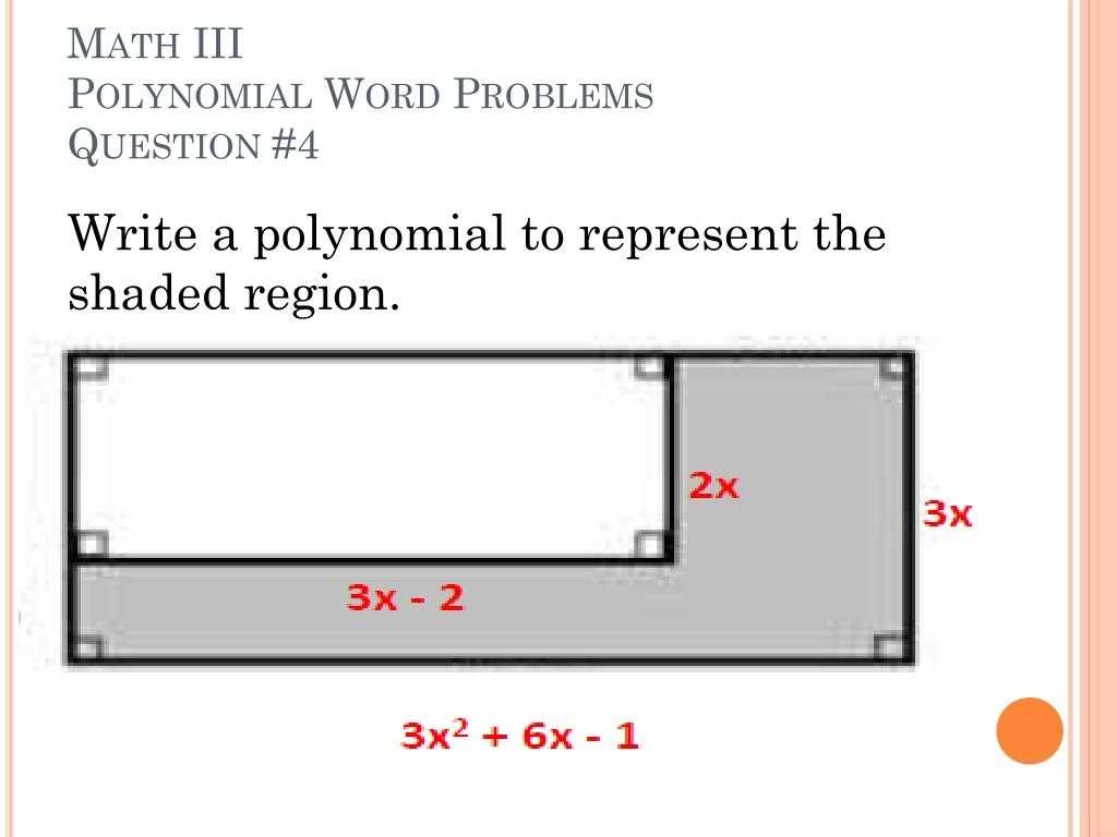 3. Offer Multiple Examples: Offering multiple examples of polynomial word problems can help to reinforce the concept. Teachers can provide examples of different levels of difficulty and encourage students to solve them as a group. This can help students to gain confidence in their problem-solving abilities and become more comfortable with the material.