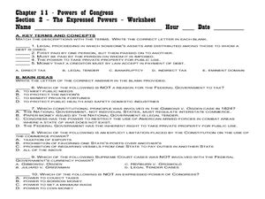 Exploring the Powers of Congress: A Worksheet Exercise