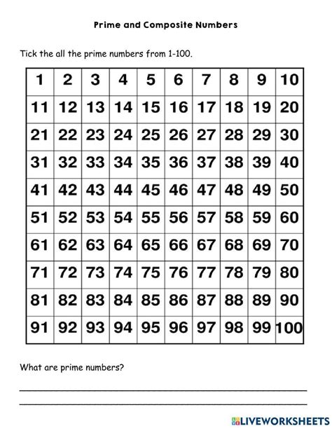 Prime and composite numbers worksheets can also help to develop problem-solving skills. By providing students with opportunities to practice with prime and composite numbers worksheets, they can learn to identify patterns and develop strategies for solving problems. This can be a great way to introduce students to higher level mathematical concepts such as algebra and geometry.