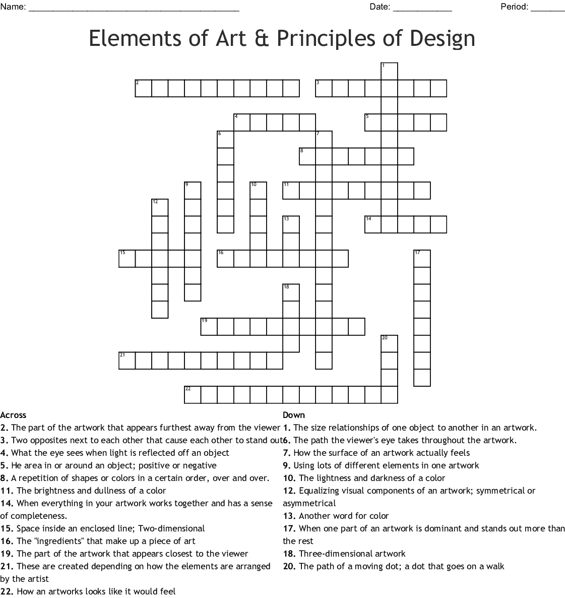 Elements Of Art And Principles Of Design Crossword Puzzle Throughout Principles Of Design Worksheet