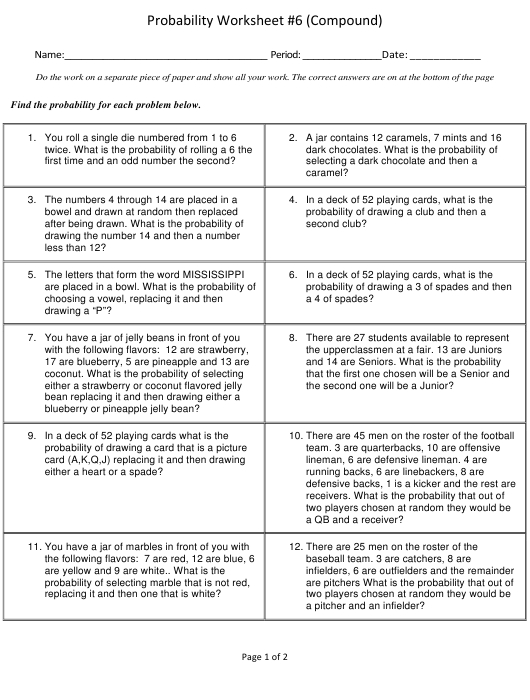 Another advantage of using probability worksheets is that they can provide an opportunity for students to engage in meaningful problem-solving activities. By engaging in activities that require the use of probability, students can gain a deeper understanding of the underlying concepts and how they are related to each other. Additionally, they can gain a better appreciation for the importance of understanding the relationships between different variables and the implications of those relationships.