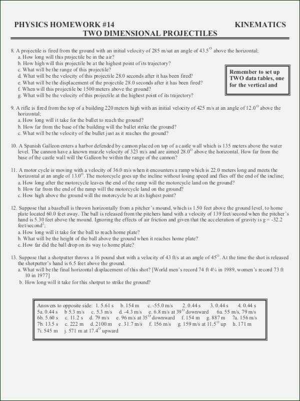 By providing students with worksheets designed to help them explore, understand, and solve problems related to projectile motion, teachers can help their students gain a deeper understanding of this fascinating phenomenon. Through these worksheets, students can learn to approach challenging problems in a systematic way, and gain confidence in their problem-solving skills. Ultimately, this can help them to become more successful in the classroom and beyond.