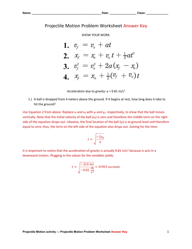 Finally, the use of a projectile motion worksheet answer key is beneficial for students who are studying for exams. By having a clear reference, students can quickly and easily look up the answers to any given problem, rather than having to spend time trying to figure out the answers themselves. This can help them to quickly and accurately answer questions on their exams, allowing them to pass their exams more easily.